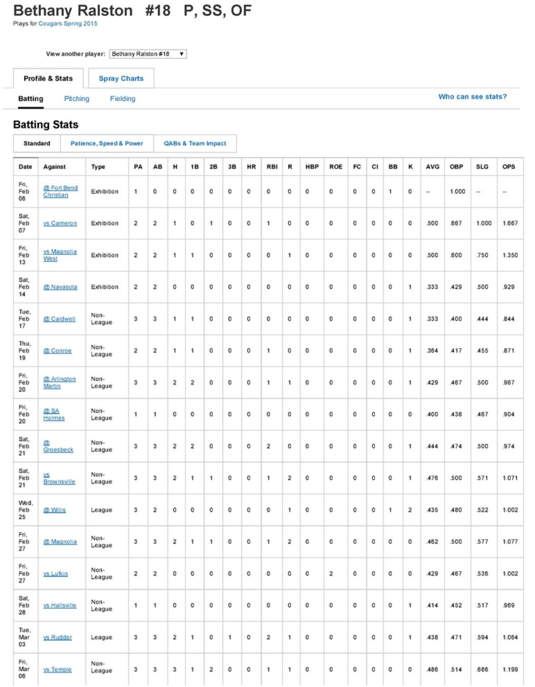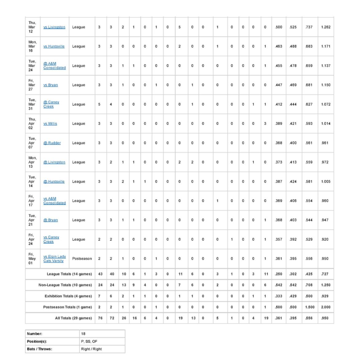 ***All statistics provided courtesy of Shawn Reynolds via GameChanger***