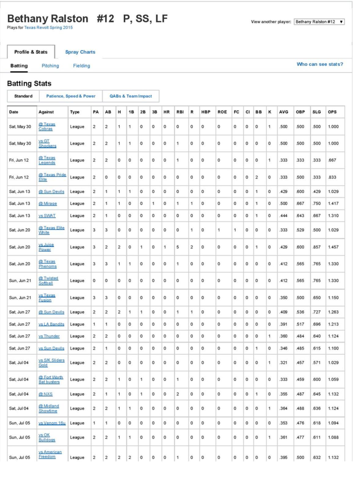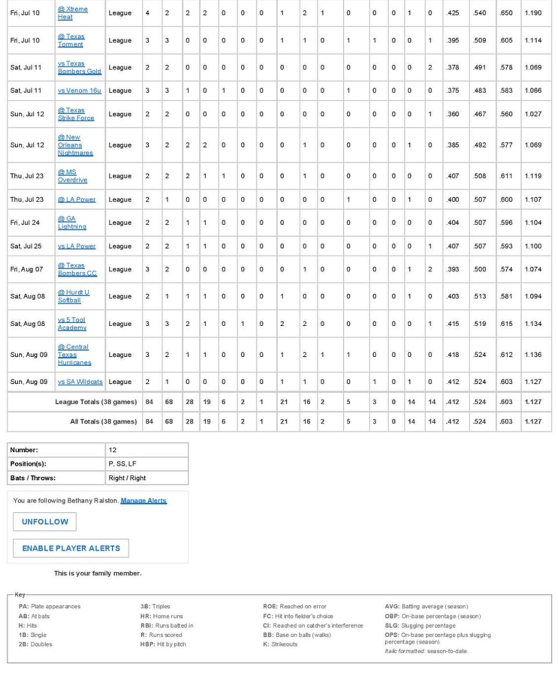 *****All Statistics Provided Courtesy of Megan Reynolds and Kyle Jones via GameChanger*****